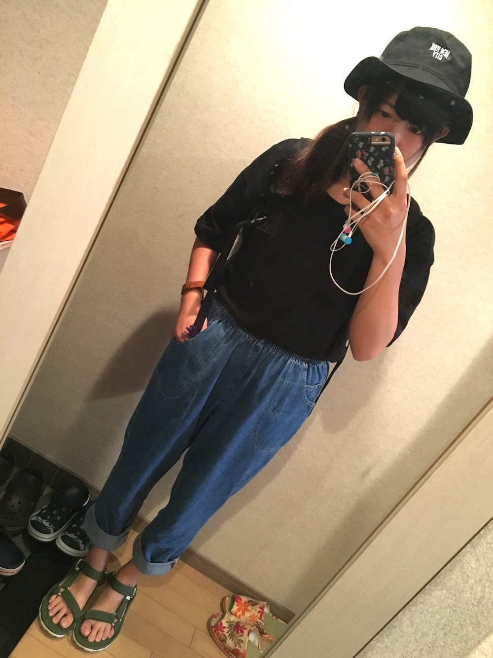 GUのポッケTほんと好き。笑 無地がやっぱいいなー ジーンズは裾を折ってみました〜