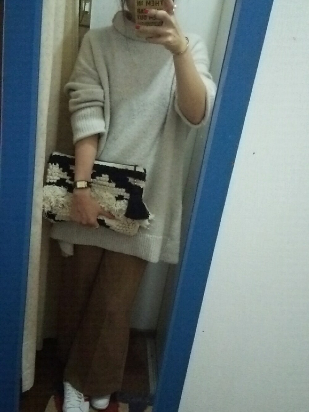 またまた、GUのワイドパンツ笑(*´∀`)♪ 黒も買えばよかったなぁ…(´・ω・`) 古着屋で見つけたロングニット♪首もとも、ピチッてならなくて苦しくなくていい☆⌒(*^∇゜)v