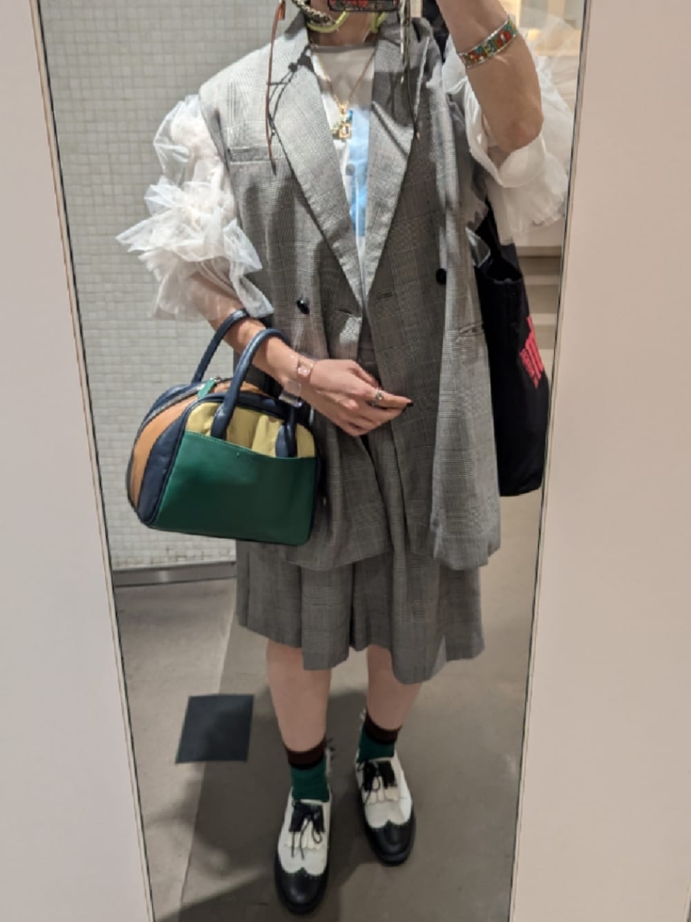 10月の三連休、やっと多少秋らしくなって来たので(昼間は暑かったけど)ナノ・ユニバースのセットアップを着ました。定価ならベストとパンツ合わせたら4万超えるんだけど合わせても13000円ぐらいまで抑えました、いい買い物! ほんとはインナースリムな袖の方が合う気はするけど、グッズのTシャツをドレスアップしたくて袖フリルのチュールと重ね着です。