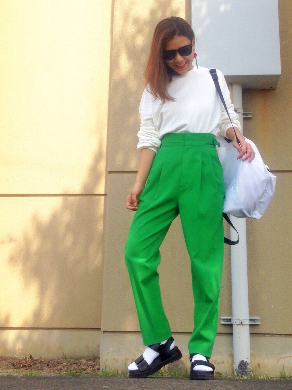 ミドリムシコーデ🐛☺️ お出かけしてきます💕 ミドリムシコーデで🐛 もうこのアンルートのパンツ、 ディテールもカラーも一目惚れだす✨ 申し分なし! コレを買った時からホワイトを合わせ様 と思っとりました🌟 WEGOの ギャザースリーブスウェット はその名の通り、スリーブのギャザーが 可愛い💕 WEGO割引の時に買いました✨ 🌟ピアスの木🌳 私がhandmadeしたピアスの中でも特に お気に入り&新作を✨ 今日もお付き合い有難う御座いました✨✨ 明日から通常で御座います💕 通常ってゆっても2コーデしたりするけ ど😓 皆さんのいいね、大切に思ってます。