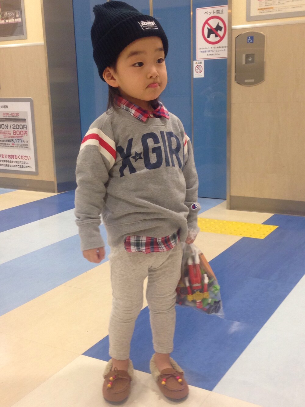ru_iiのスウェット「【VERY(ベリー)11月号掲載商品】XGS Champion CREW NECK SWEAT LOGO (4T~7T)/ チャンピオン」を使ったコーディネート