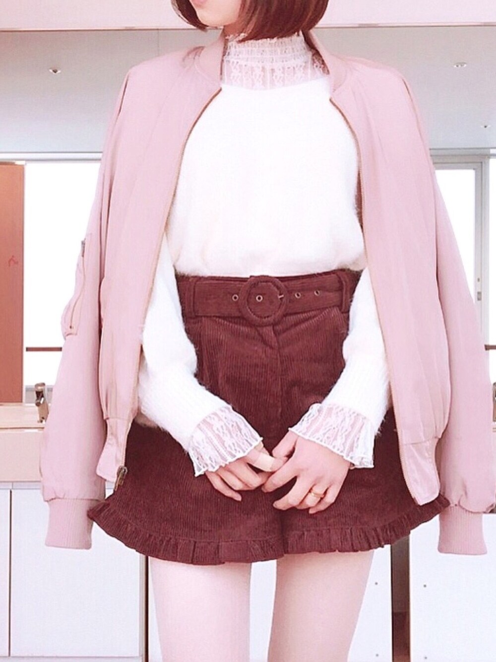 ☺︎ one after another NICE CLAUP ☺︎ ピンク、アイボリー、ボルドーの3色で絞ってまとめました( ' ' )♡ 靴はレッドのレースアップシューズ履いてます! コーディネートは、小物も合わせて3色でまとめると大人っぽくまとまって見えるそうですよ💭 ナイスクラップのシャギーニット、触り心地がふわっふわで大好きなんですー💓 ショートパンツは裾に向かってAラインのシルエットになっているので、着痩せ効果も脚痩せ効果もすごい 最近流行りのレイヤードスタイルも、 ナイスクラップさんのレーストップスならニットやスウェットに合わせるだけで簡単に可愛らしくガーリーテイストに着られます! ナイスクラップさんのお洋服は本当に可愛いものばかりなのでオススメです😬新作に期待 Instagram ꒰ @nns_o0 ꒱