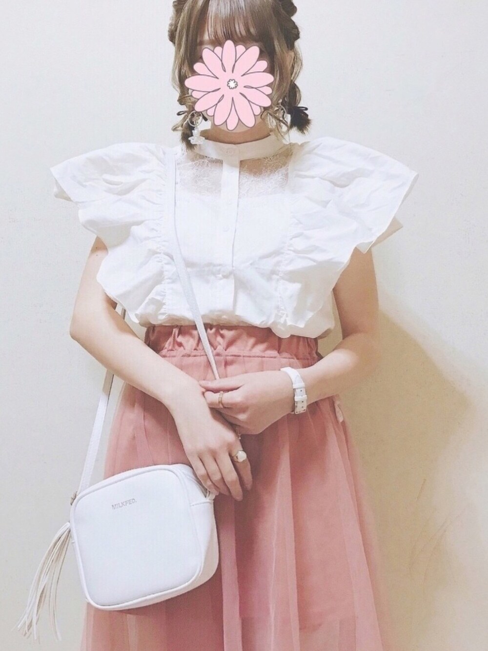 春の白×ピンクコーデ🕊🌷 Instagram ( @nanamilk_o0 )