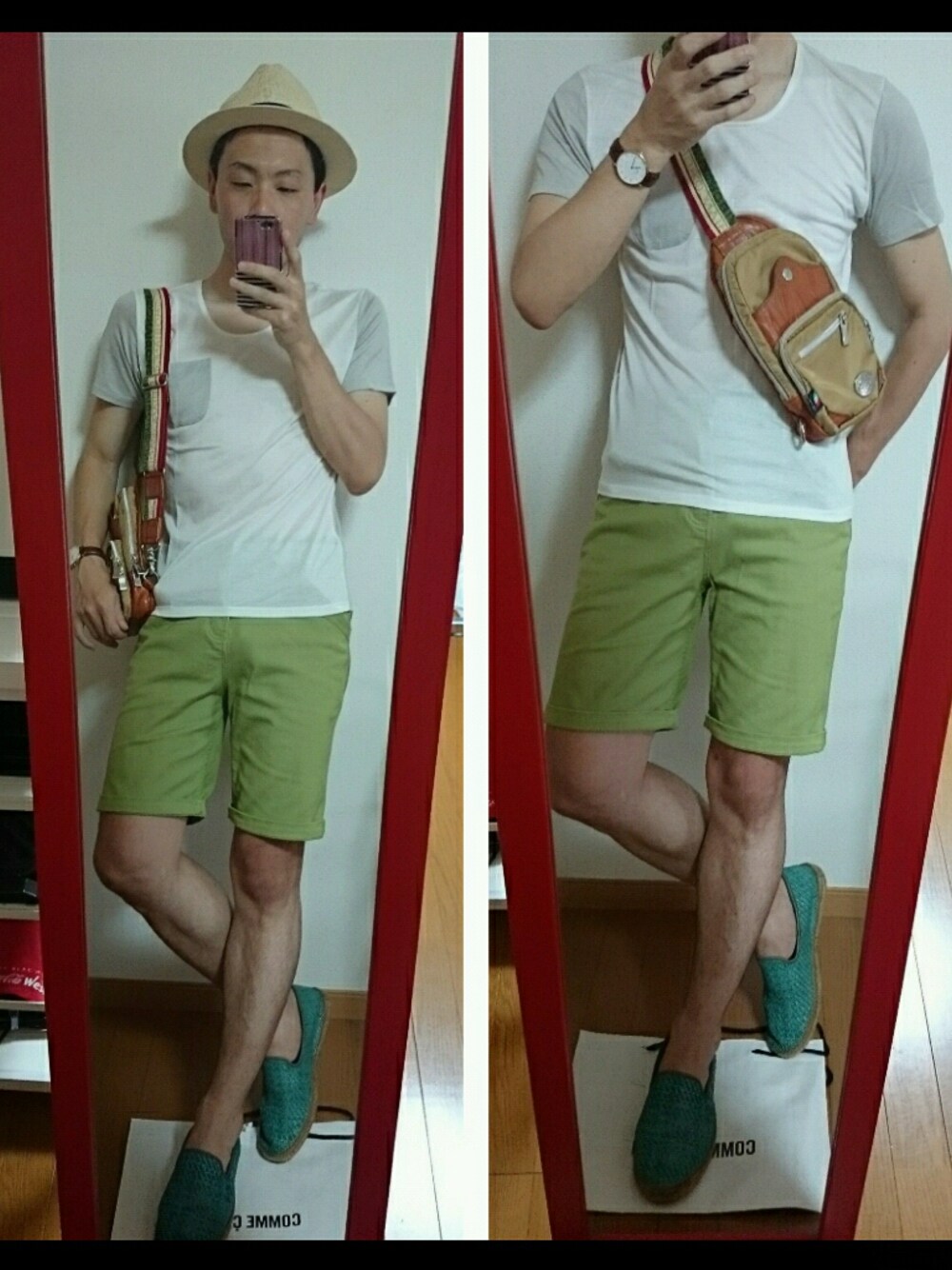 昨日のサッカーでかなり焼けました(-_-;) 猛暑の中11時から16時までグランドにおるとフラフラです。ここ数年もう夏はサッカーとか無理なんじゃないかとも思ってたりするのですが(^^; さてコーデですが夏っぽくパンツとエスパはグリーンで✨海にいくならこんな格好かなという感じです🎵