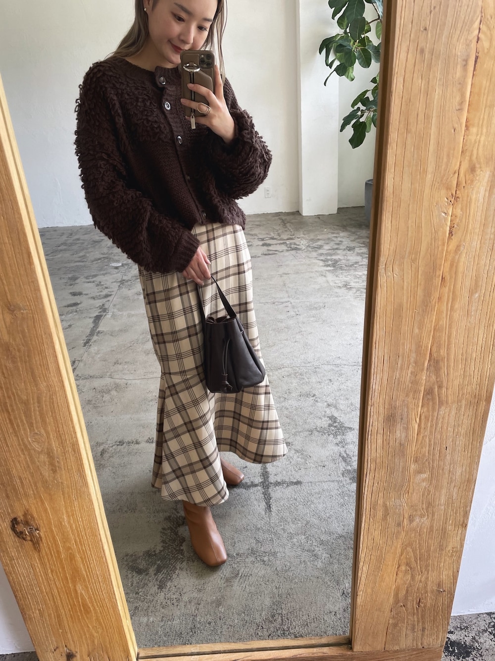 Lianのカーディガン/ボレロ「モヘアタッチループニットカーディガン」を使ったコーディネート
