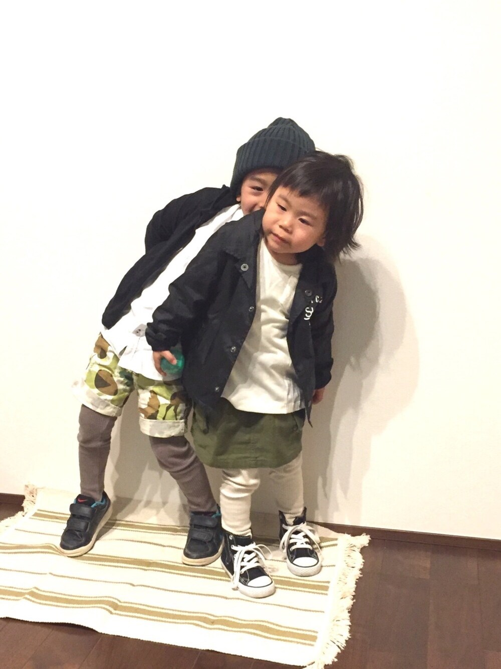 いらっしゃいませ。 妹の目が死んでいます。 妹がかわいそうなのか、兄がかわいそうなのか。 仲がいいのか悪いのか。 なーちゃんが着ている白のトップス、サイドがプリーツになってて、一枚で着てもサマになります。 では、またのお越しをお待ちしております。