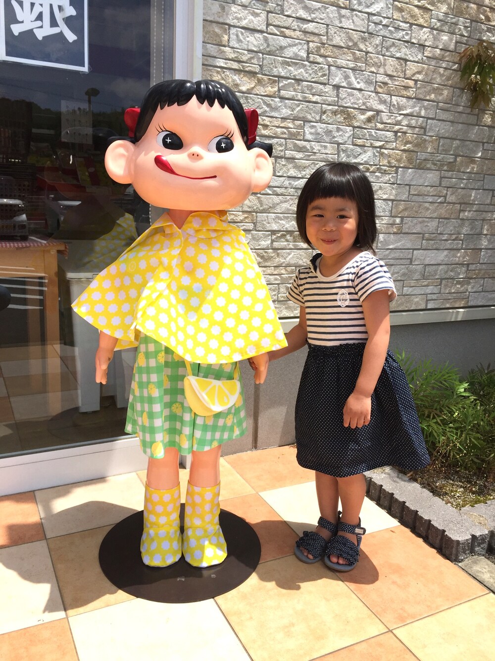 ワンピースしか着たくない病継続中。 withペコちゃん。 劇的に短い前髪がリンクしてます。