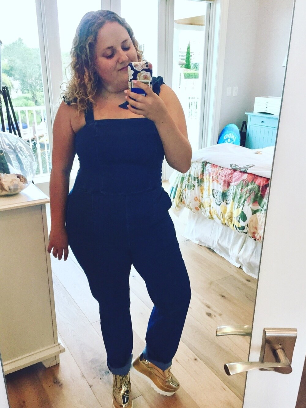🌈Old soul in a modern world 🌈• • • #overalls #goldsneakers #fashion #platformsneakers #platform #jeanoveralls