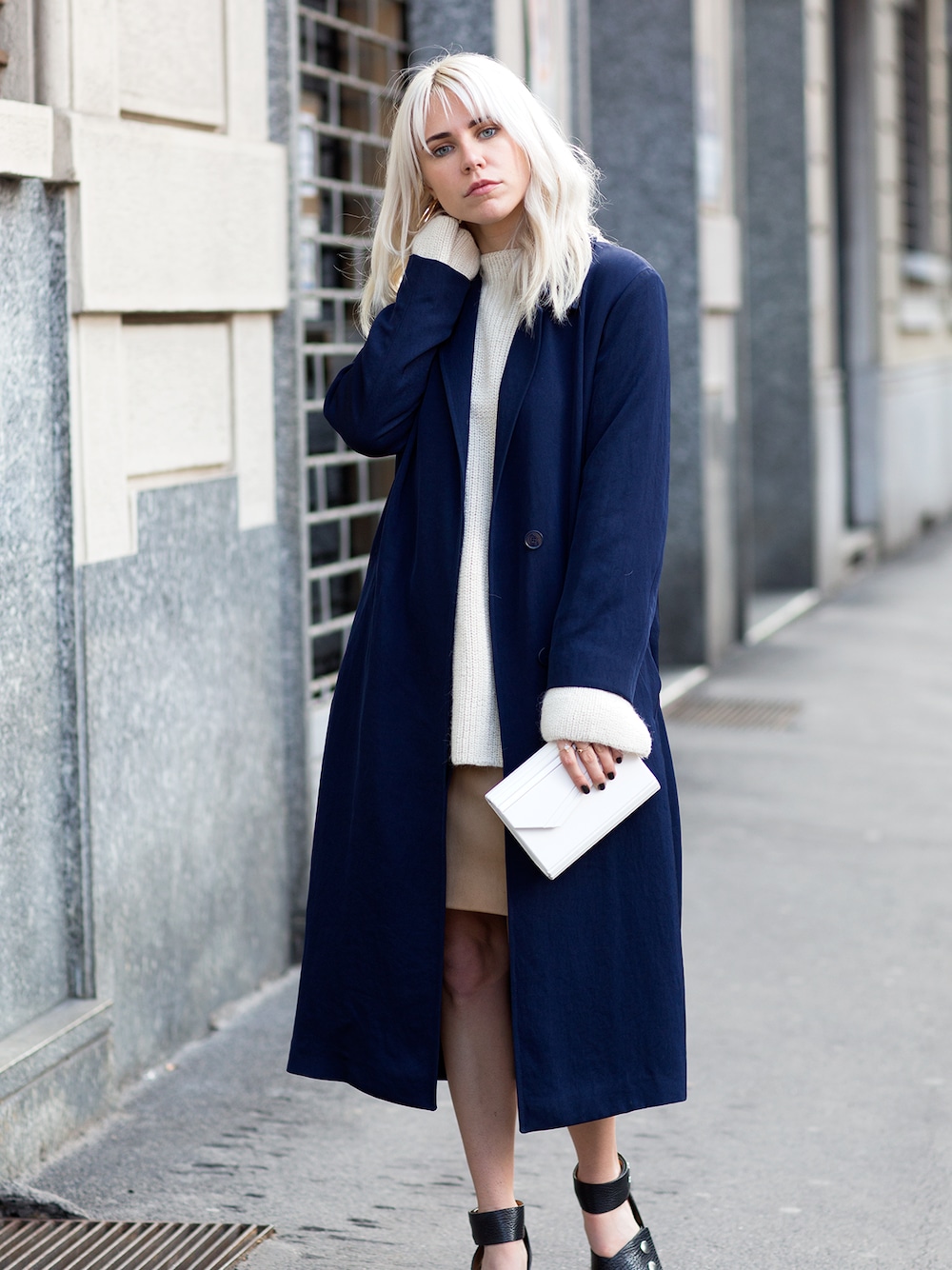 This was one of my fav. looks from MFW, and also the navy Sandro trench was one of the best things I bought this season. The robe like trench has a navy sheen to it, that makes me want to grab it and wear it with every pair of jeans I own, and more. The robe-trench, do it!