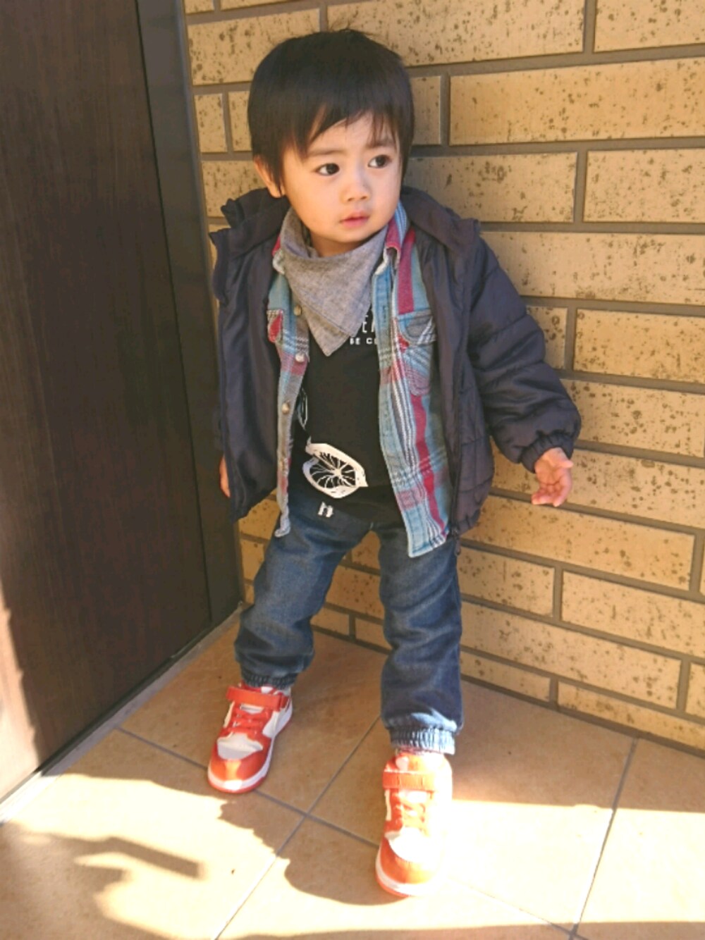 見てくださりありがとうございます(^^)いいねやコメント、フォロー、セーブ嬉しいです(*^-^*) 寒いですねー!!でもお外に行く気満々の息子。 ストライダーを乗りに公園へ。 なので自転車Tシャツ(笑) 100センチだけど割と大きすぎず、お腹も出なくていい感じです😊✨ 気合い入れて外遊び行ってきます😂😂😂