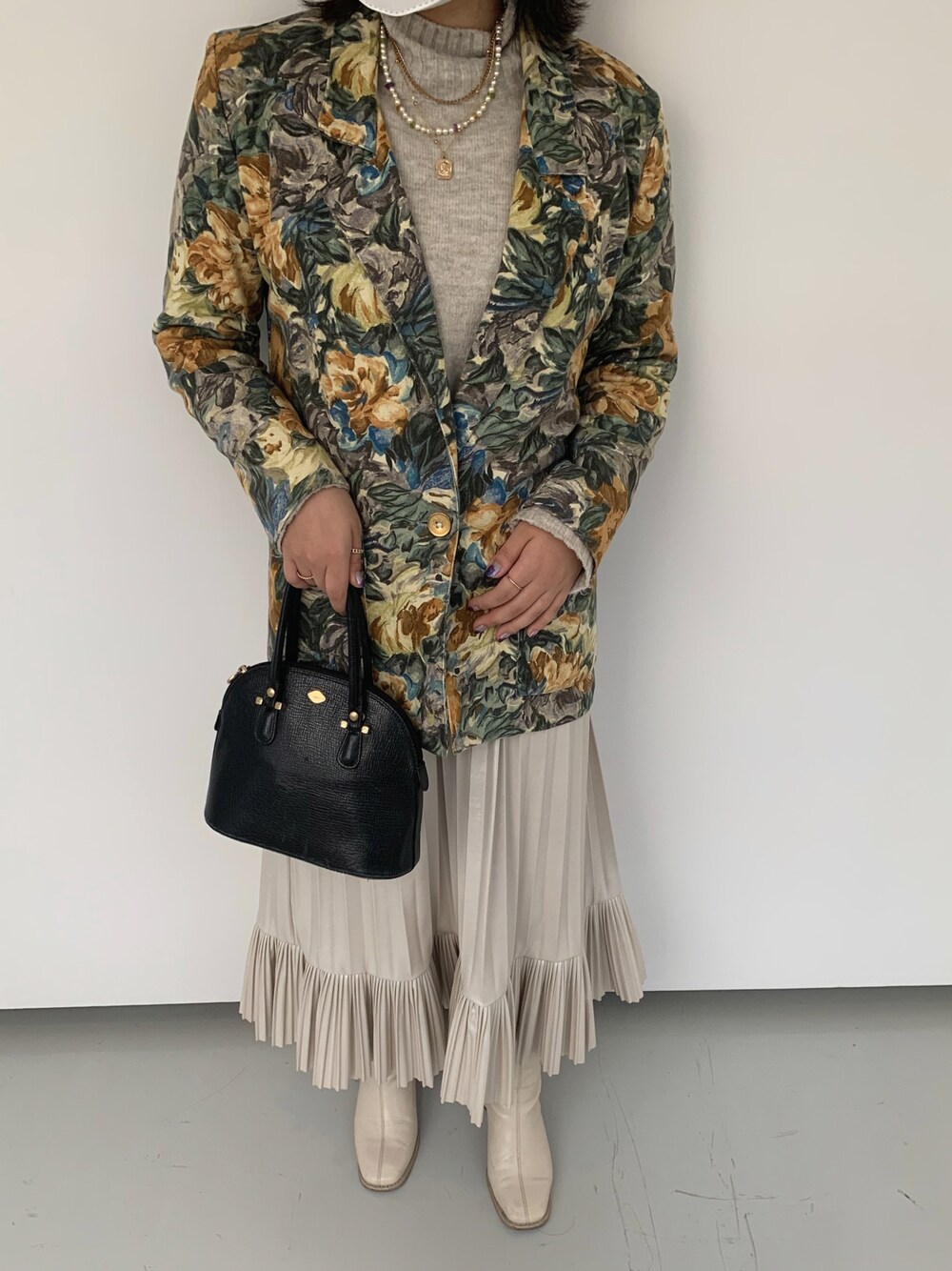 vintageコーデ。柄ジャケットがお気に入り。