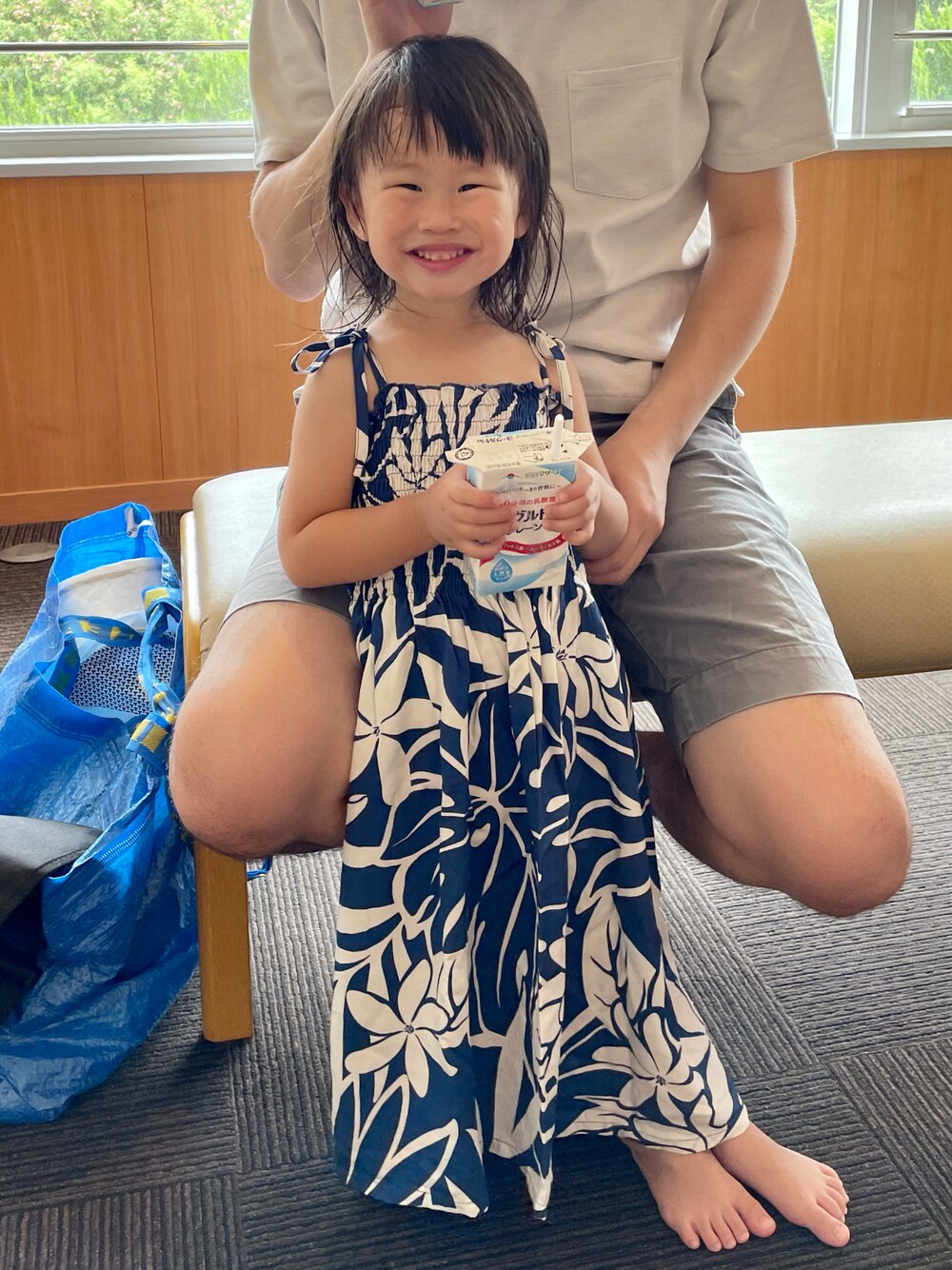 ブルー系のワンピースを着用したレディースの夏コーディネートの1枚目の写真