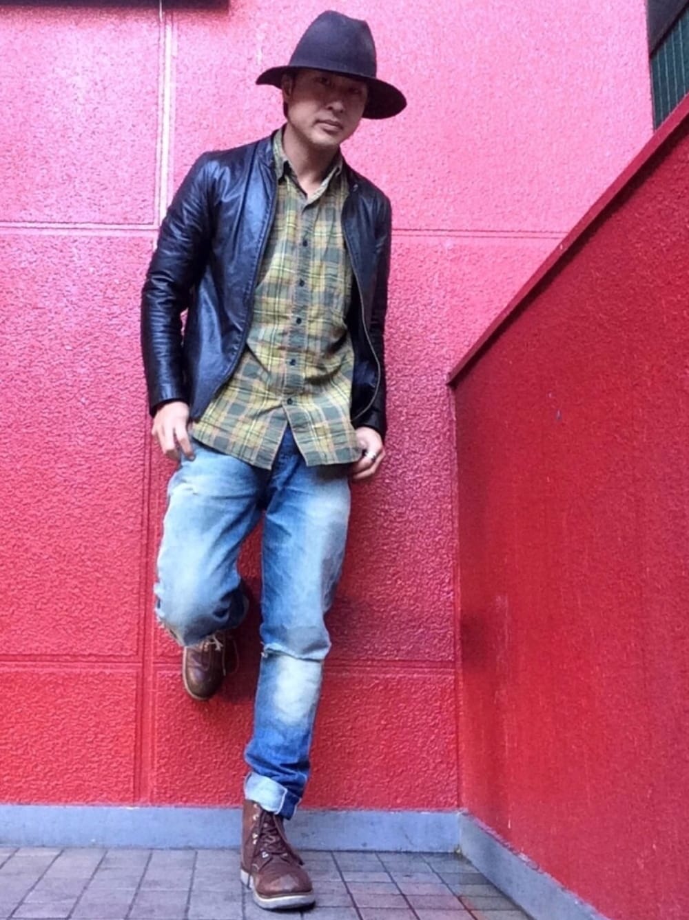 皆さんこんにちは😃 いつもイイネやお気に入り登録して頂きありがとうございます!! 今日はど定番アメカジスタイルでコーディネート組んでいます!! レザー×チェックシャツ×ジーパンの組み合わせはシンプルだけど 男らしさがでてめっちゃカッコいい組み合わせだと 思ってます!! 最近コートのスタイリング多かったきら たまには男臭いスタイリングもイイでしょ(笑) 因みに履いてるデニムは 501の1966年モデルの復刻版になってて 従来の501に比べ、テイパードが効いてる分、スッキリしたスタイリングになるのでおススメです!! このデニムパンツは買って良かったと心から思えるくらいお気に入りです^ - ^ (ポイント) ・黒レザー×デニムパンツの組み合わせに カーキのチェックシャツを合わせる事で男らしさを前面に出してます。 ・ロングブリムハットを合わせる事で大人っぽさプラス。 ・シングルライダースとデニムのシルエットをスッキリする事でカジュアルな組み合わせの中にも 清潔感が出るようにしてます。 ・とにかく大人アメカジスタイル(笑) 以上になります!! イイなって少しでも思って頂きましたら イイネやお気に入り登録宜しくお願います🥺