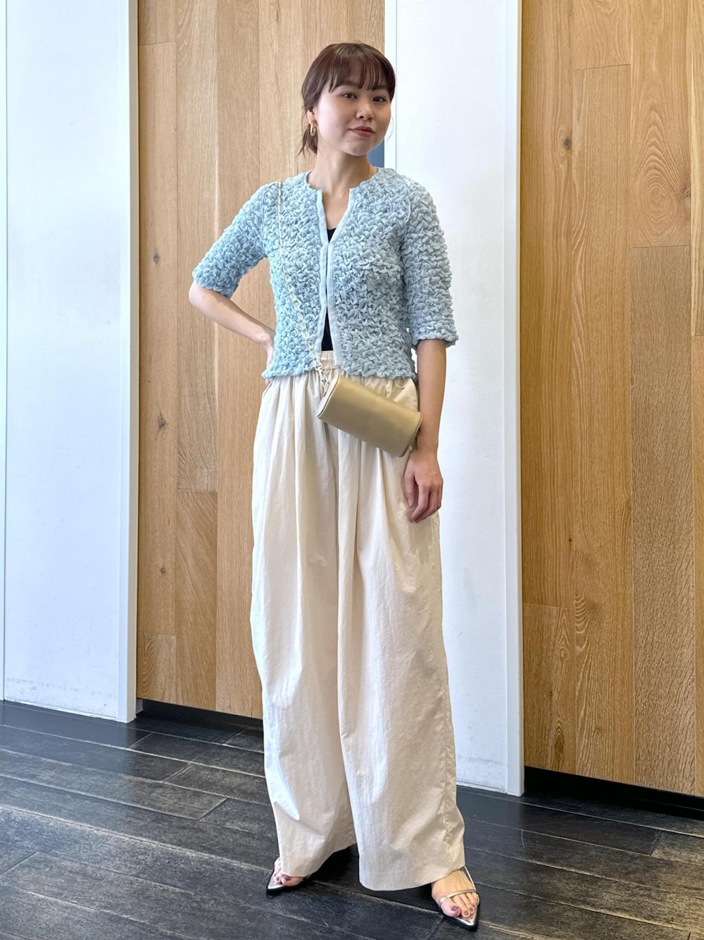 shindo(ADAM ET ROPE' 広島PARCO)のイヤリング「【LES BIJOUX】ボリュームフープイヤリング」を使ったコーディネート