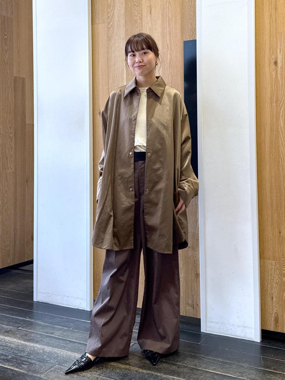 春にぴったりなアウターのご紹介です。 アウターはもちろん、オーバーサイズのシャツとしても着用できます。 サテンの素材感と深みのあるカーキブラウンは着るだけでモードでお洒落な雰囲気に○ ゆったりしているので、インナーは選ばずスウェットなど厚手のトップスも着れる為、またら秋にも活躍できます!