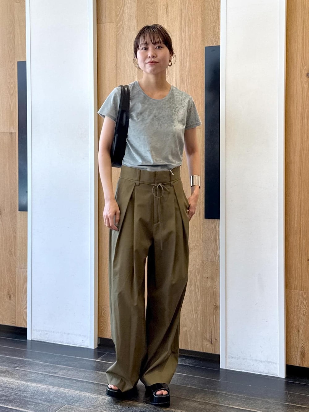 shindo(ADAM ET ROPE' 広島PARCO)のハンドバッグ「ワンハンドルラウンドロゴバッグ」を使ったコーディネート