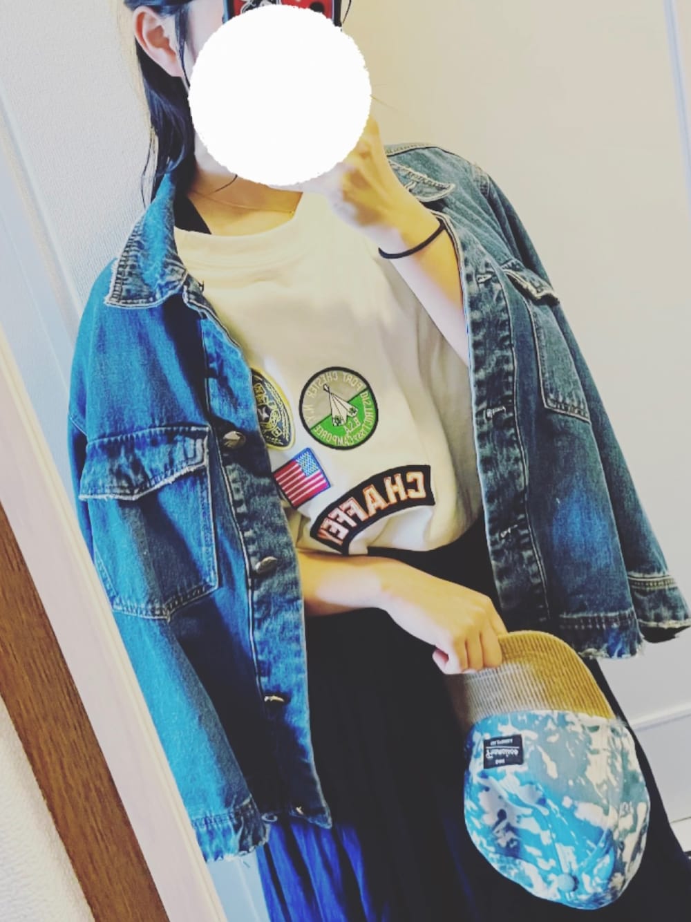 青色コーデ。🟦🟦🟦 帽子有り無し差分と、桜見てテンション上がってる写真。笑 CUBEのこれ万能すぎる。好き🫶 ZARAのデニムジャケットと紺スカートは古着屋さんで買うたんですけど、お気に入りです🫰 いつも結んじゃってるけど、久しぶりに髪下ろしてカワチー格好でぼっち花見でした✌️