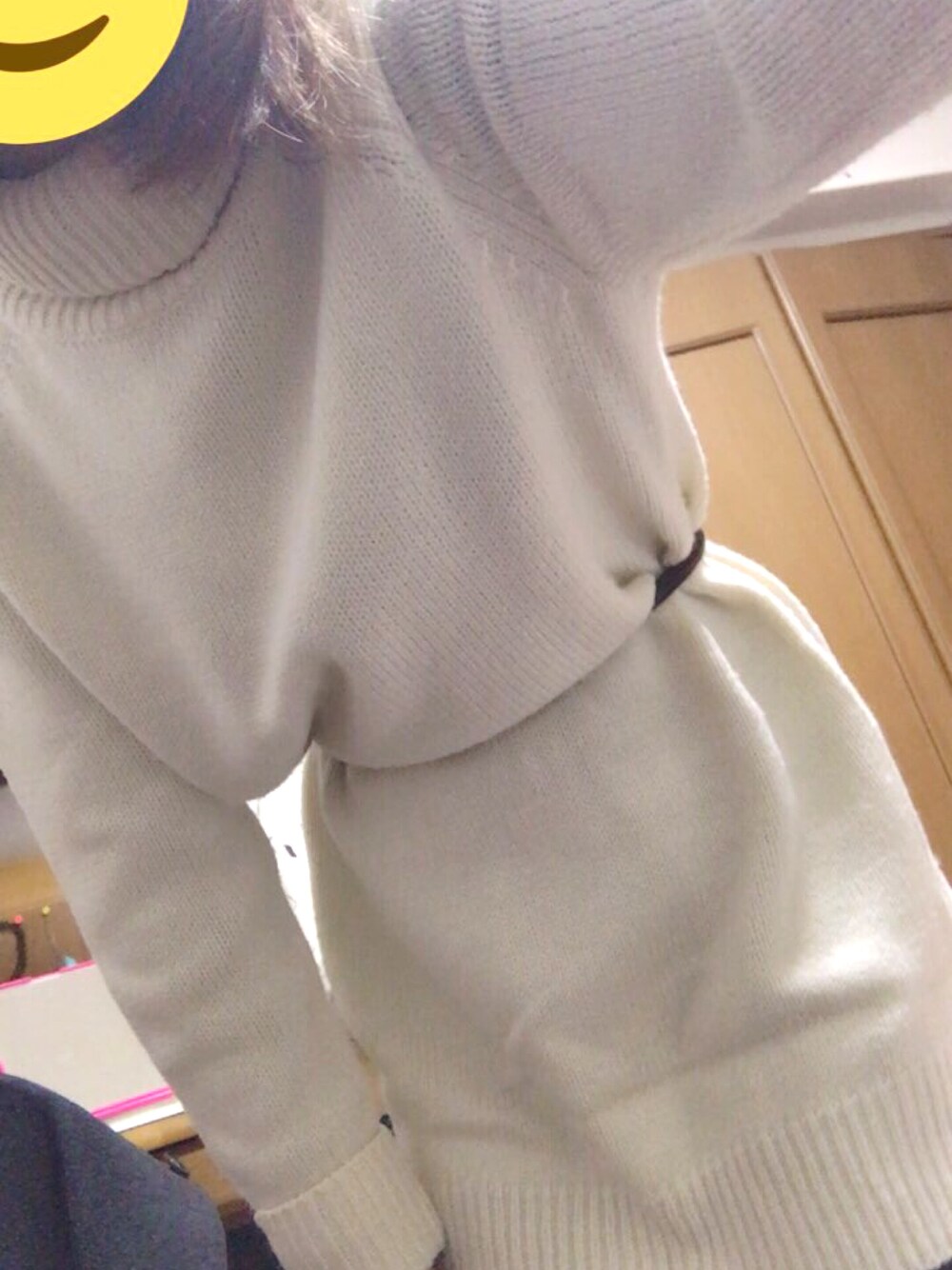 白ニットにベルトをつけるだけ。今日から歯列矯正始まりました\( ˆoˆ )/