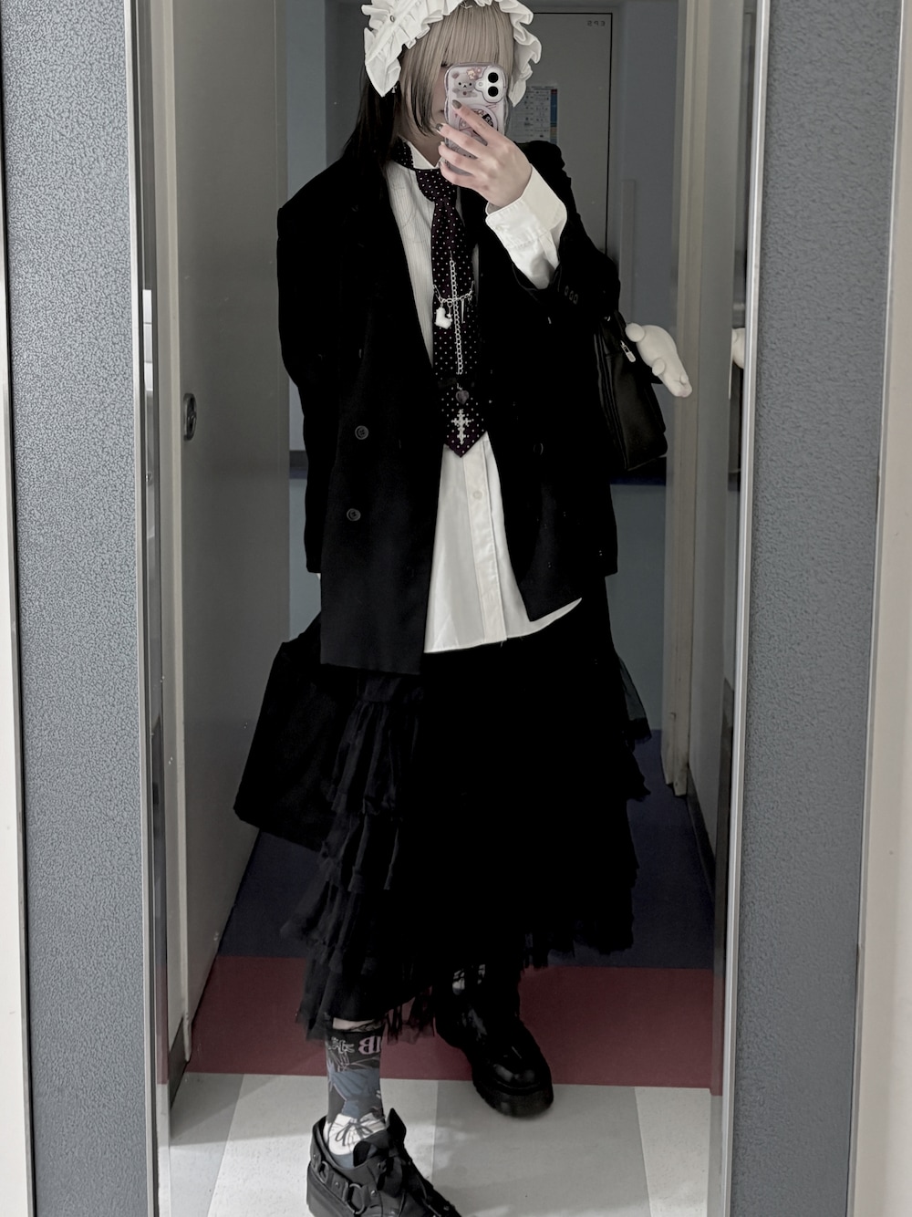 シャツのフリルをヘッドドレスにᐢ ̥_ ̫ _ ̥ᐢ