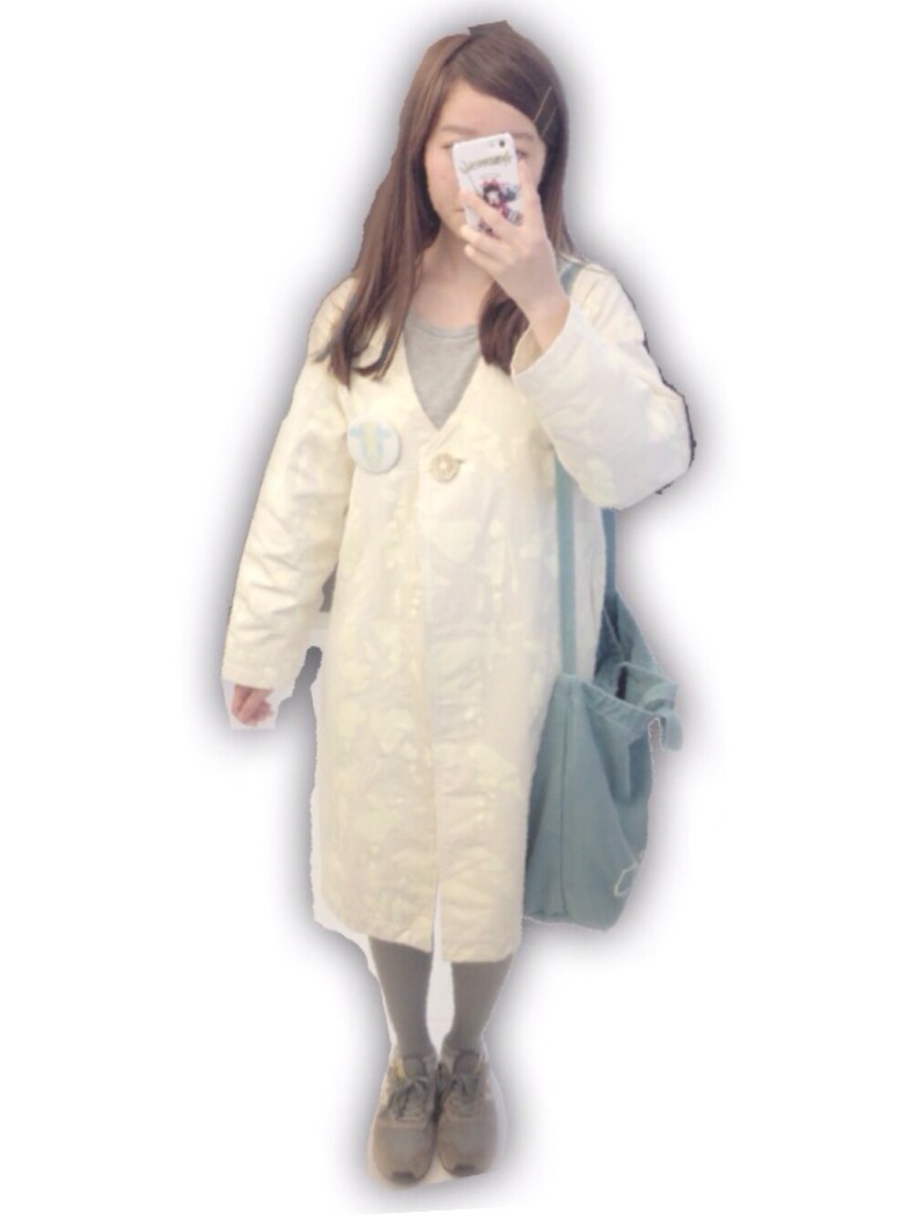 うし柄の牛乳こぼし部の洋服にグレーのタイツを合わせてみた~ 写真だと分かりづらいかもしれないけどデザイン個性的でやっぱり目立つ✶*