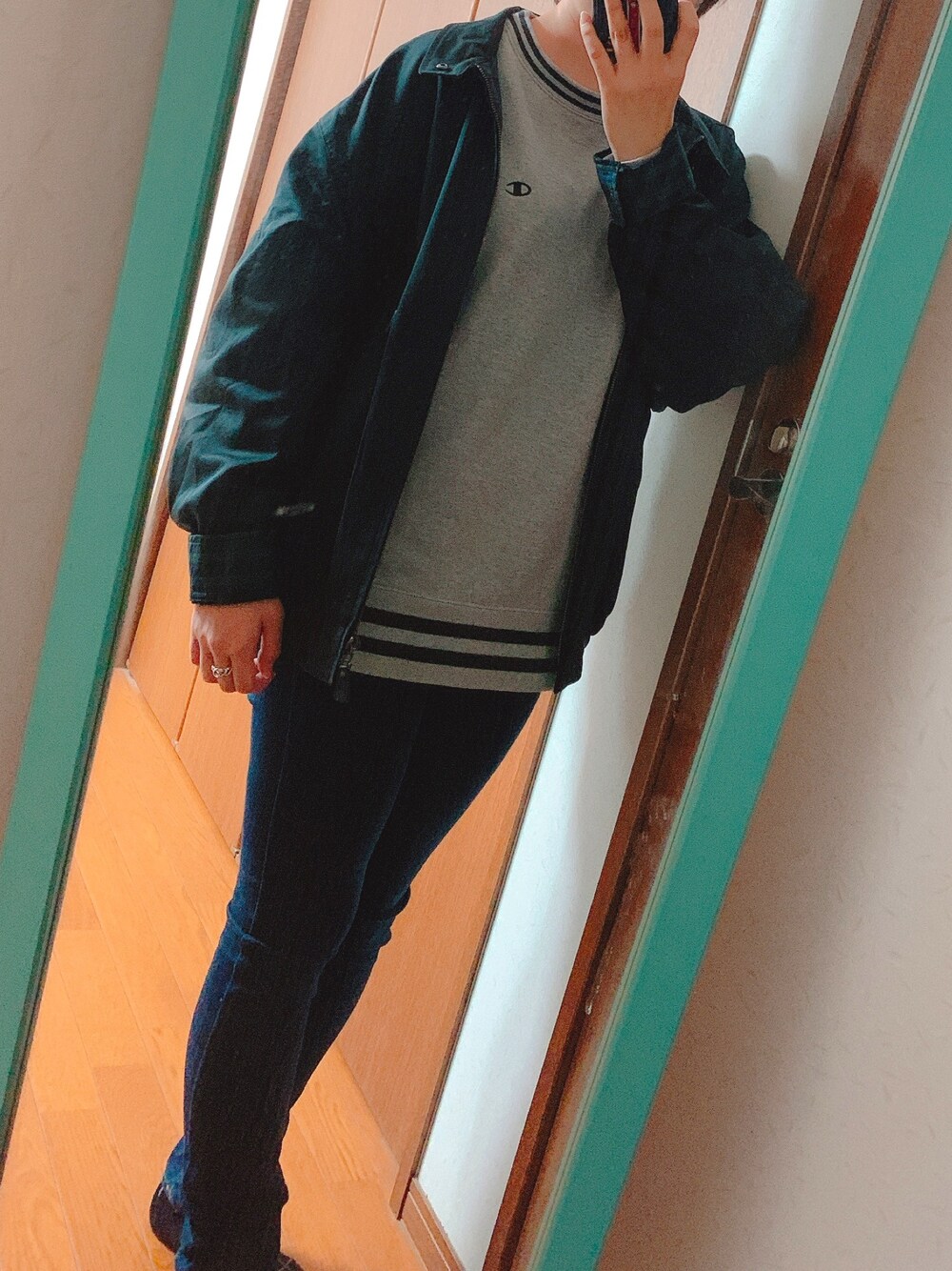 実はこの古着アウター…作業着なんです🤗 ノーブランドかと思いきや、イタリアのブランドの作業アウターで、内側の柄が素敵なデザインになってます🌞 私のは緑のギンガムチェックになってて可愛い!となって1500円ぐらいで買えてしまった✨下北最高👍🏻