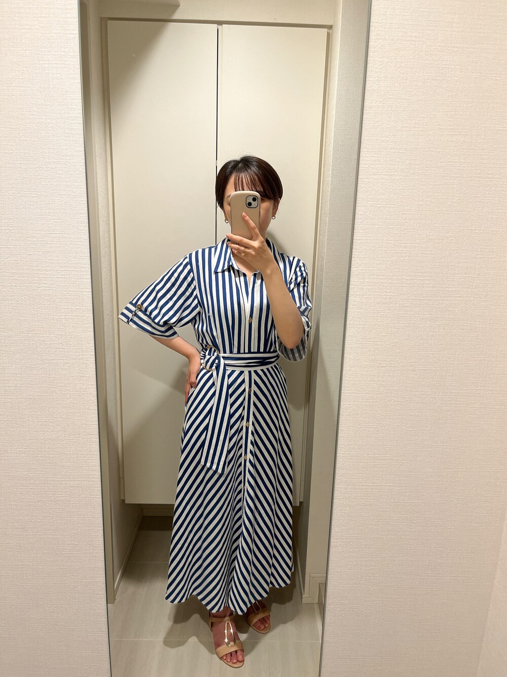体も心も背筋が伸びるZARAの夏ワンピ👗 ◈腰周りの余裕をベルトでスッキリ見せ ◈ちょっと緑がかったブルー×ゴールドボタン・ピアス (イエベ肌の人向け) ◈ストライプ柄で縦ライン強調 (骨格ストレート向け) ◈オープンカラー (骨格ストレート向け) ※さすが海外デザイン…!着るだけでテンション上がるけれど、胸元の開き具合だけ気になる方は注意⚠️