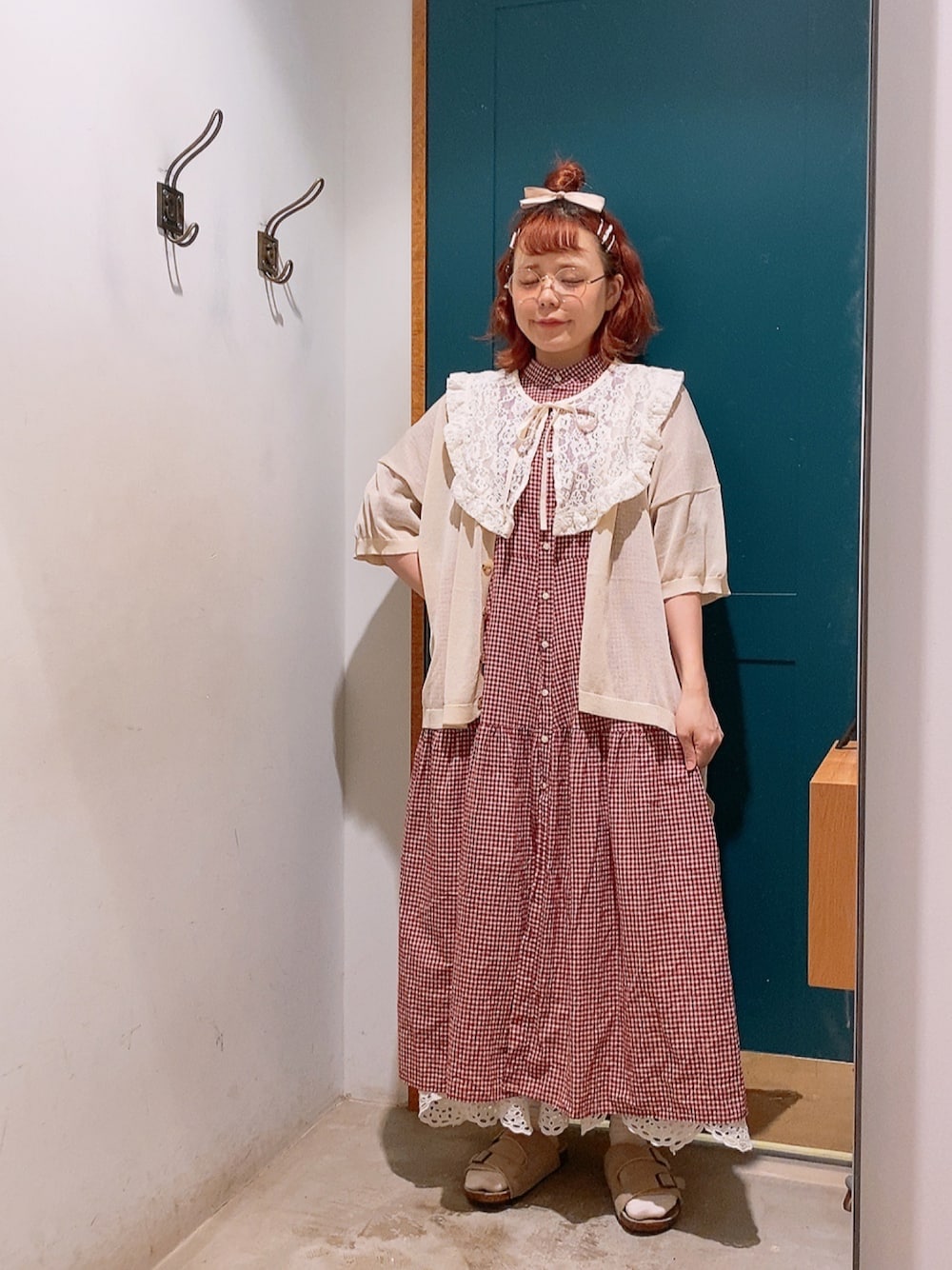 ご覧いただきありがとうございます🙂↕️ お気に入りのティアードワンピースに カーディガンをプラスした ナチュラルガーリーコーディネートです🎪 カーディガンはお袖がたっぷりなので、 ゆったり目のお袖のワンピースでも◎