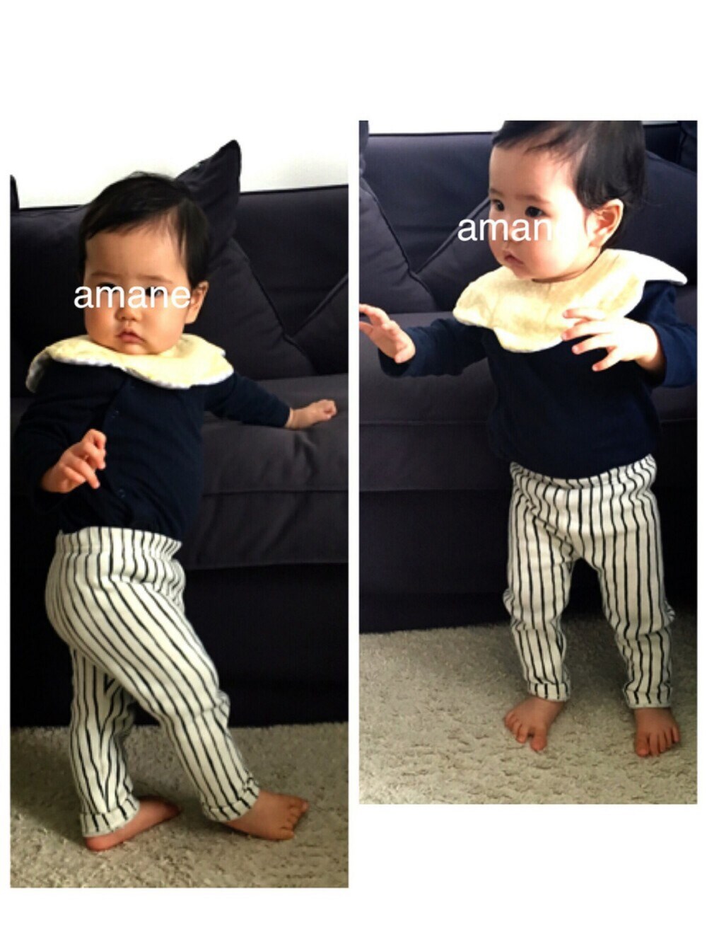 きょうはパパチョイスのお洋服です☺︎ ストライプのパンツで脚長効果(❛ᴗ❛ )✧