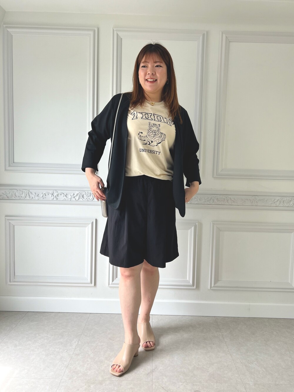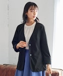 KYARAKOI.act(nissen本店)のノーカラージャケット「大きいサイズ 美ラクRUタッチシンプルジャケット(接触冷感)」を使ったコーディネート