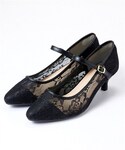 KYARAKOI.act(nissen本店)のパンプス「【ゆったり幅広】ポインテッドトゥレースストラップパンプス(低反発中敷)(ワイズ4E)」を使ったコーディネート