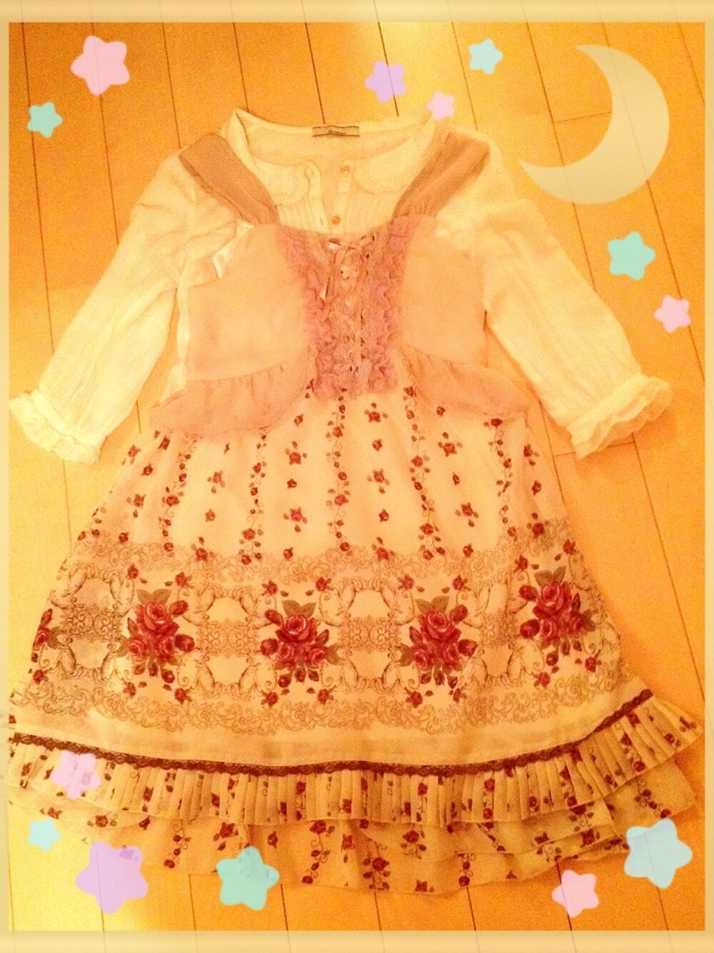 axesで先日購入したワンピースです。 人気らしく再入荷したばかりだそうです(*´◒`*) 春らしく七部丈のブラウスに薔薇があしらわれているワンピースを合わせました! ブラウスは襟が可愛くて気に入っていてちょうどひらひらとしたワンピースとマッチして可愛らしい感じになっていると思います(._.)
