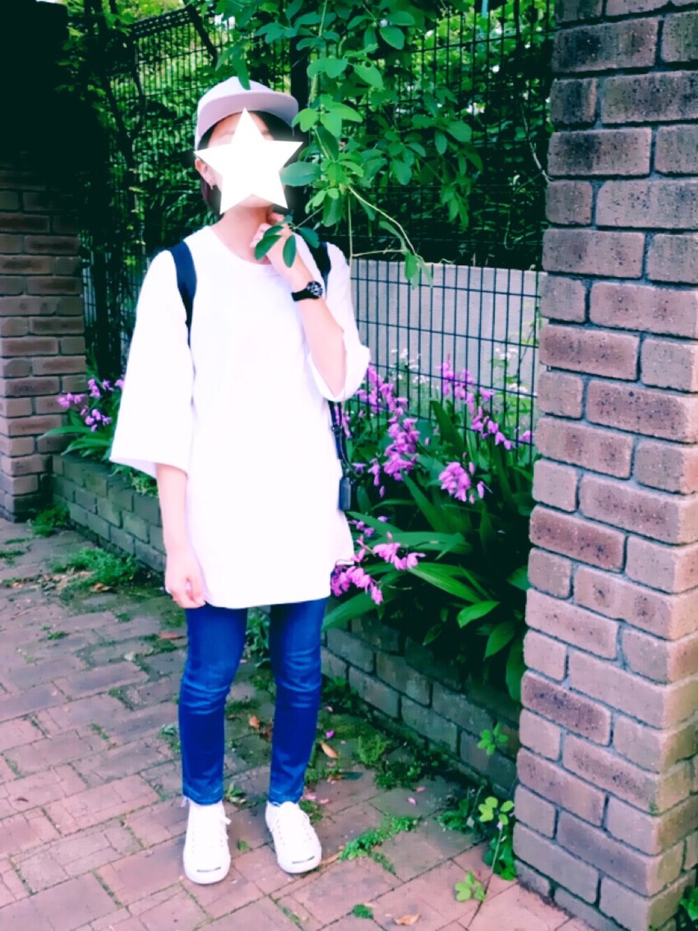 自由が丘をお散歩しました🚶♡ 数年前に買ったKastaneのキャップは久しぶりに被りました。 髪切ってから帽子も合わせやすい! 古着屋さんで買ったTシャツはHanesのXLサイズでワンピっぽくして着てます。