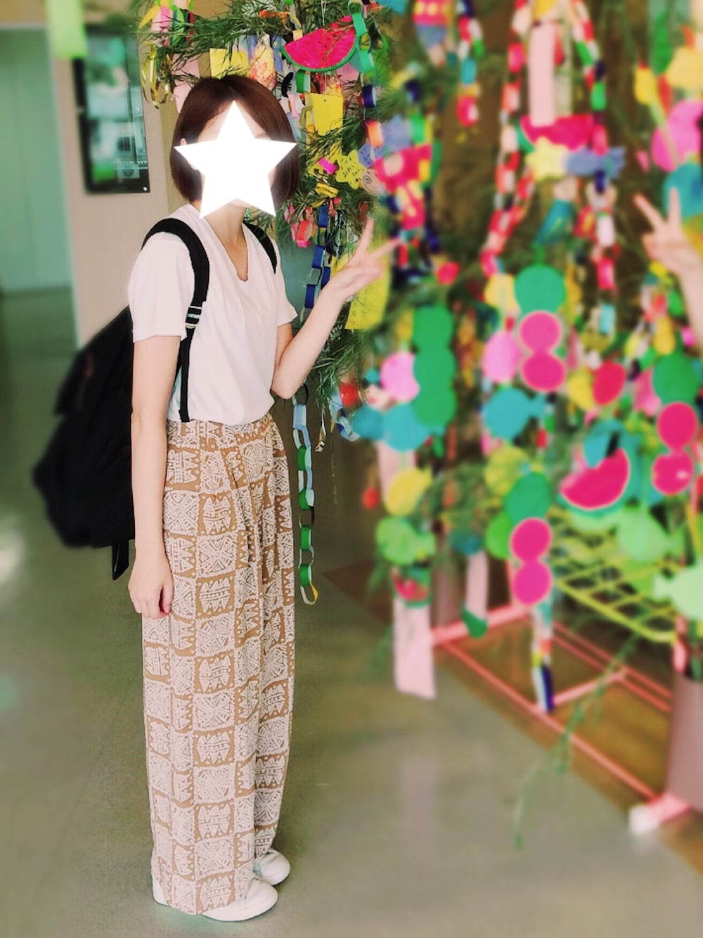 職場の笹飾り🎋 古着屋さんで買ったパンツはサイズ感がぴったり! てろてろしてるから履き心地も良い◎