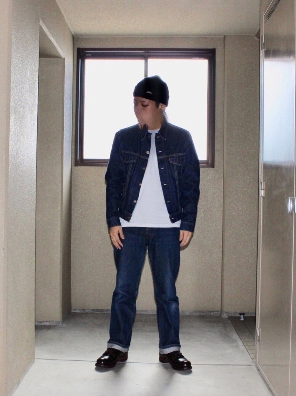 がわのデニムジャケット「LEVI'S(R) VINTAGE CLOTHING デニムジャケット ダークインディゴブルー 1967 Type 3 ジャケット」を使ったコーディネート