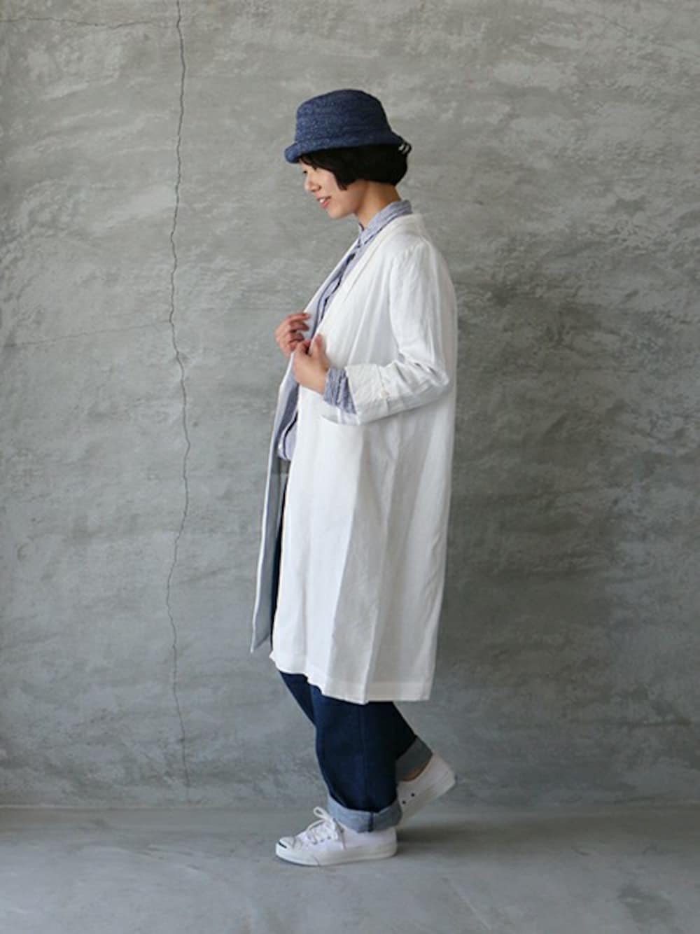 ホワイトリネンのスプリングコートに デニムを合わせました。 *items* コート : ina デニム : veritecoeur スニーカー : converse