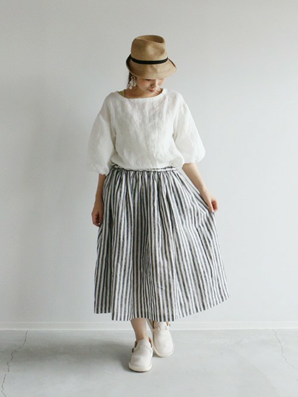 バルーン袖のプルオーハーに ストライプのスカートを合わせました。 *items* プルオーバー :ambience tote スカート : ambience tote 靴 :fracap