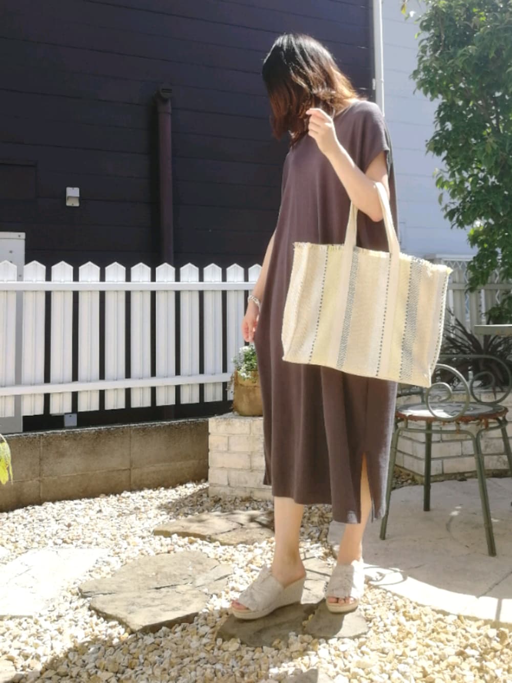 ちょっと前だけど夏のコーデ 今更ながらあげます バッグがさわやかで、これを持つだけでかなり夏っぽい感じが出ます。