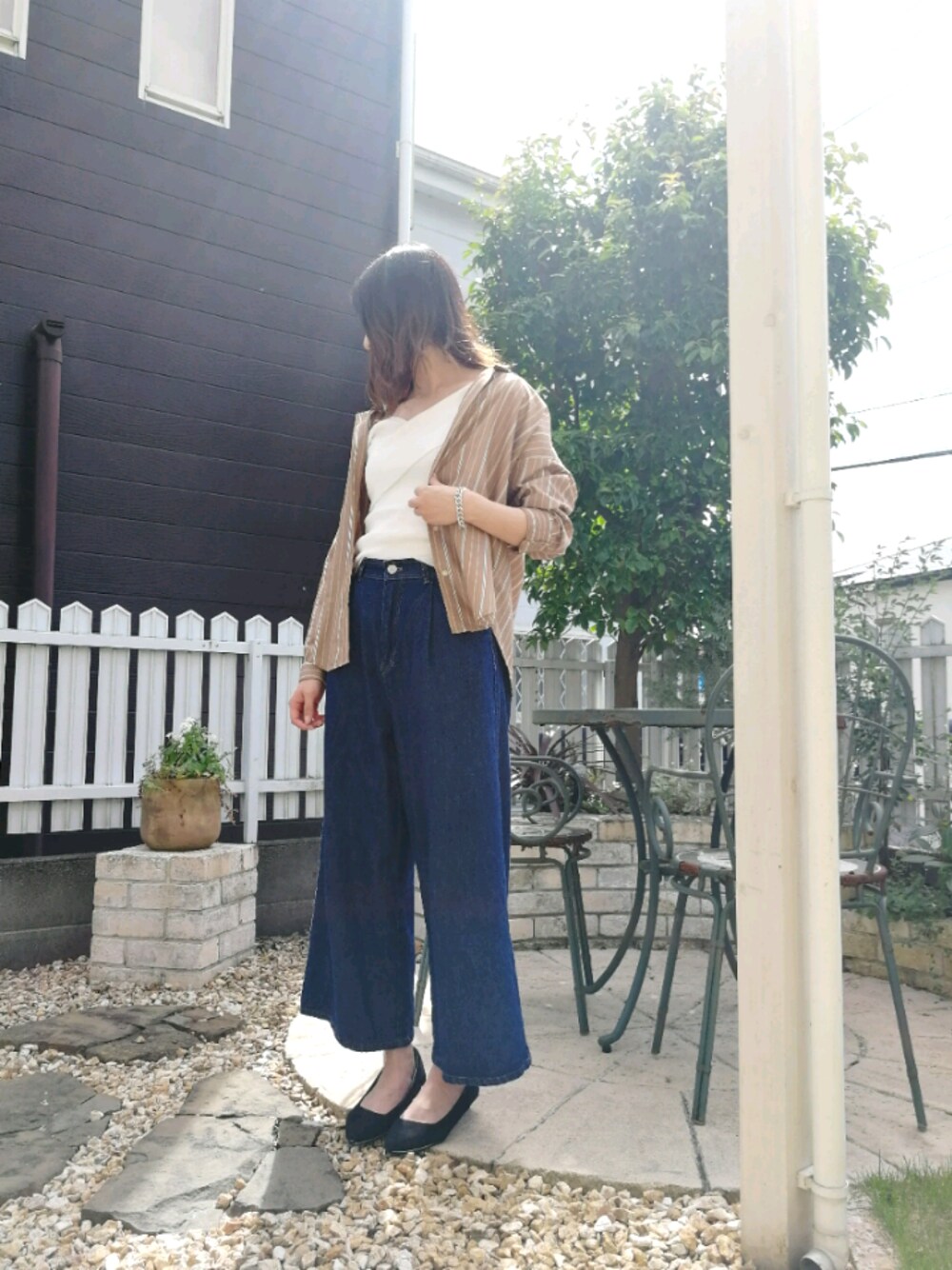 SaKuRaのデニムパンツ「0デニム共ベルト付ワイドパンツ」を使ったコーディネート