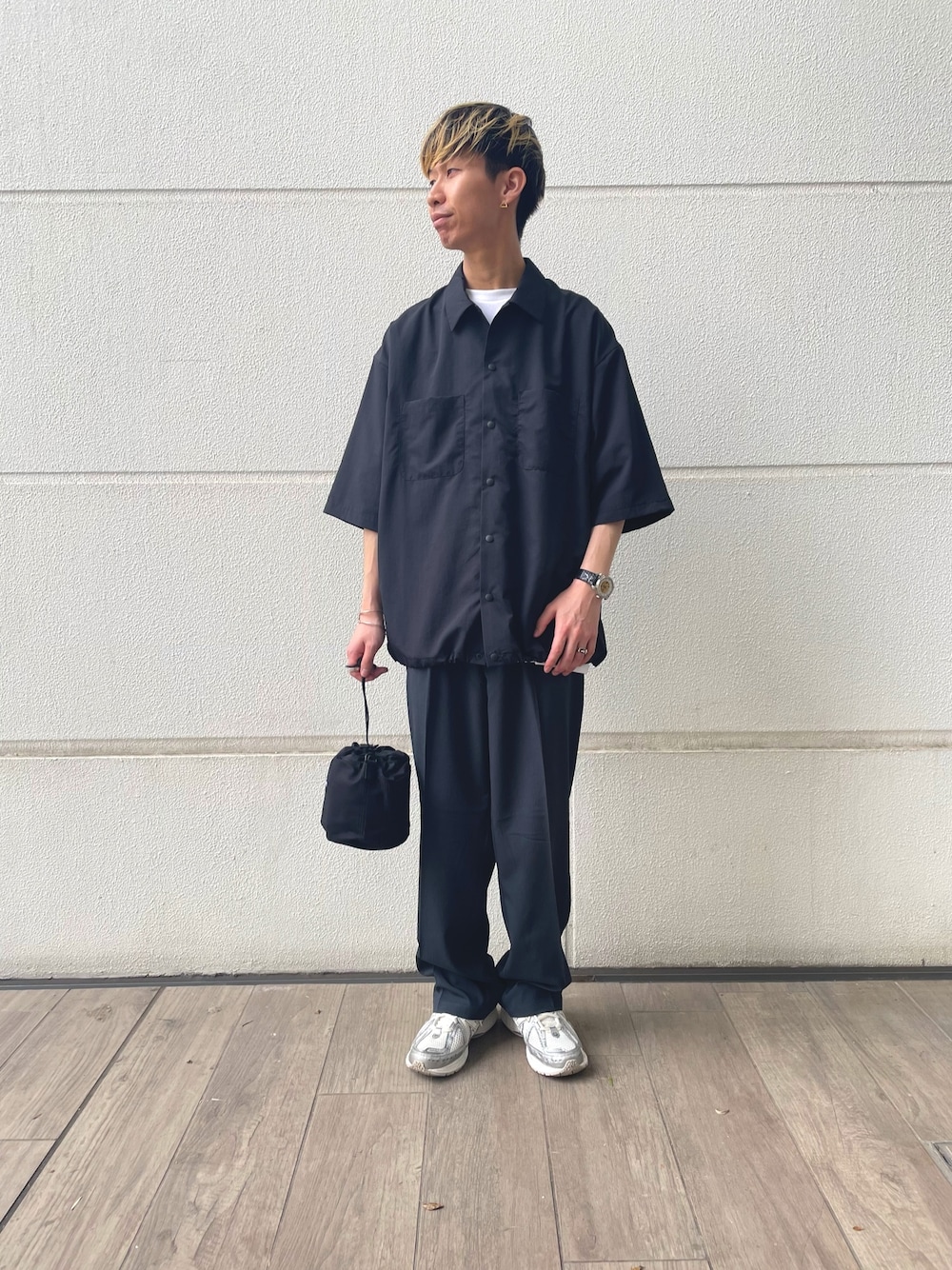 年齢:20代 身長:175cm 体型:細身 オーバーサイズが好きなので、Lサイズ着がち。 僕もリアルバイした半袖シャツを使ったコーディネート! サイズ感はしっかりオーバーサイズですが、 丈感はドローコードで調節可能となってます。 かなり軽い着心地で少しひんやりする肌触りがおすすめです! ドローコードだけでなく、両胸のポケットがシンプル過ぎないデザインでgood!! スナップボタンで着脱も楽チンなので、 是非お試しください!