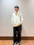 これからの季節、重宝間違いなしのニット。 スウェットとニットの中間くらいで 肌触りも柔らかく着心地◎ カーゴパンツで少し野暮ったさをプラスしたコーディネート。