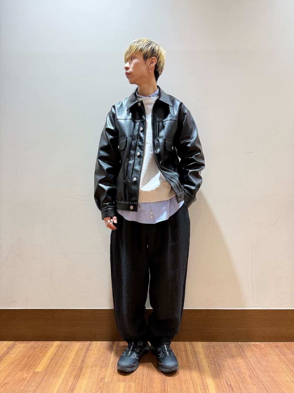 春の新作アウターを使ったコーディネート。 春らしいカラーをインナーにして重たくないようにコーディネート。