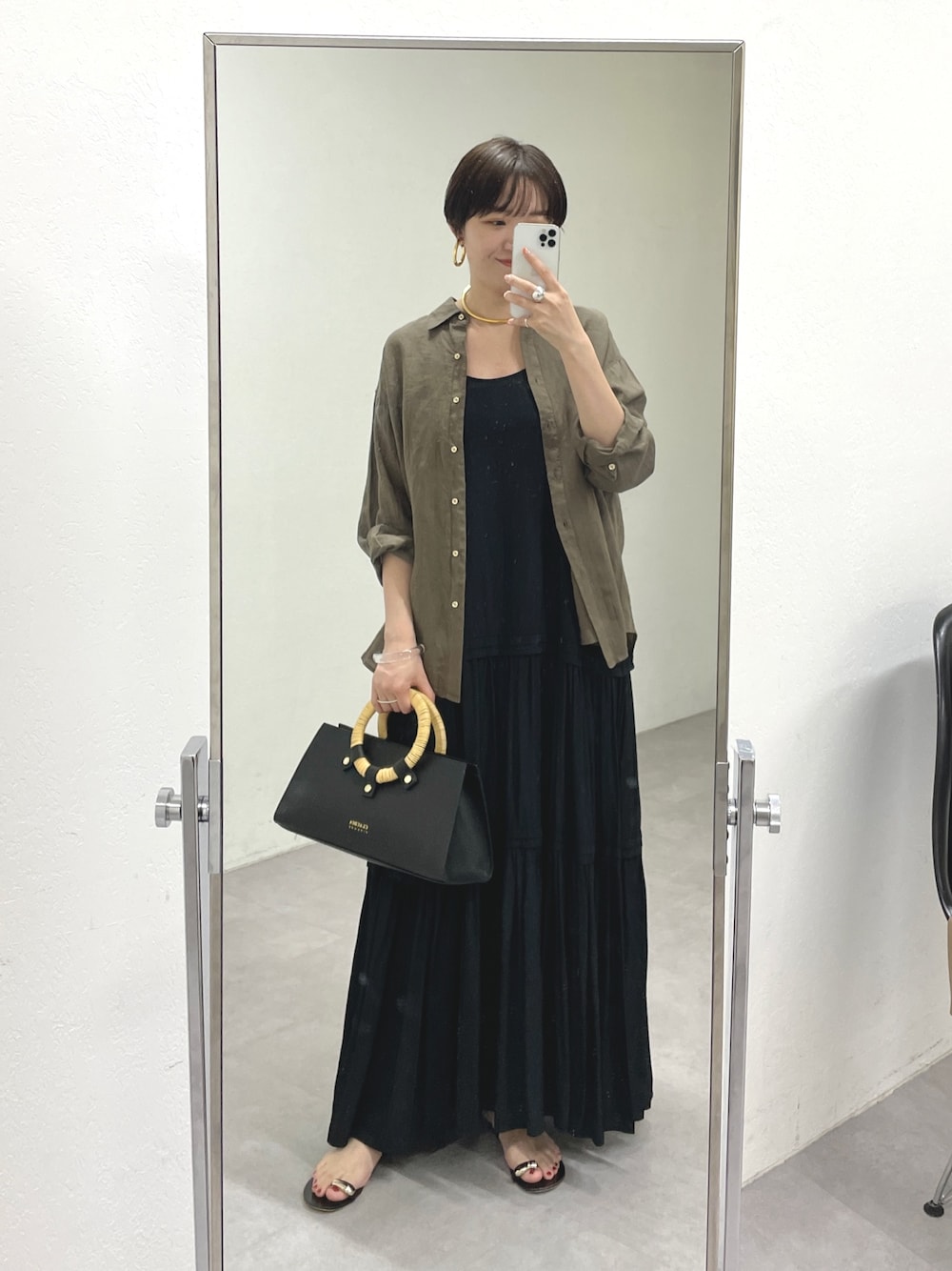 初夏に着たいキャミワンピース。 リネンシャツを羽織ったら、リラックス感のあるコーディネートに。