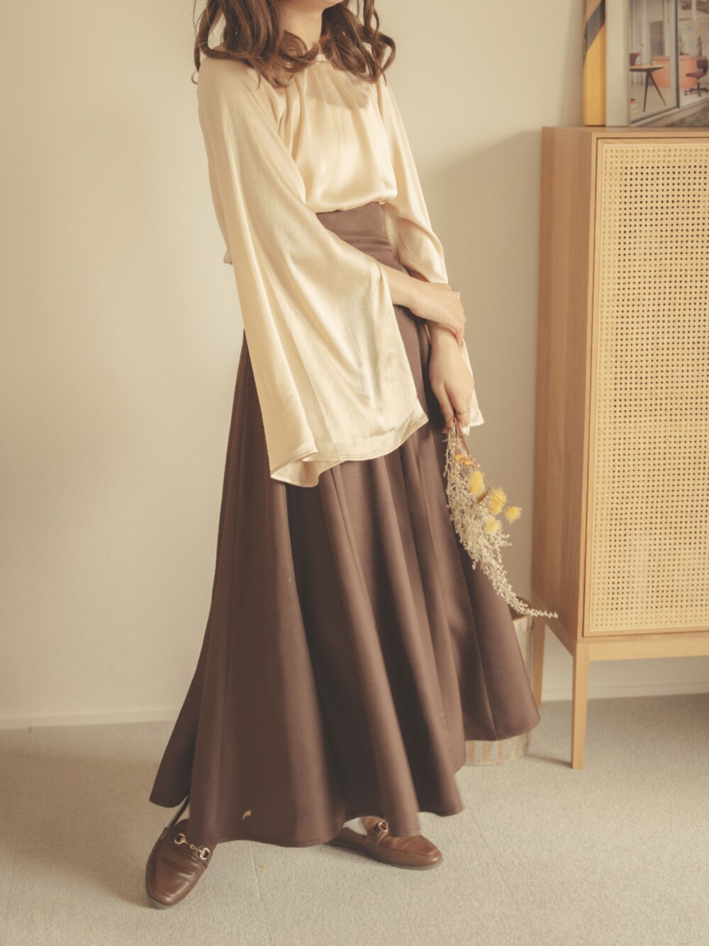 アンブルネージュ/AmbreNeige (Ambre neige)のスカート「ハイウエストボリュームスカート/【WEB/EC限定商品】」を使ったコーディネート