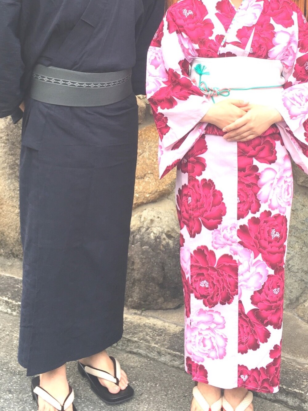 . 🎆🍧 . いたみ花火大会 行ってきました . はじめてのレンタル浴衣 自分では買わない柄と 白い帯がお気に入り💗 . 彼は自前の浴衣です🗽 . 20170826 .