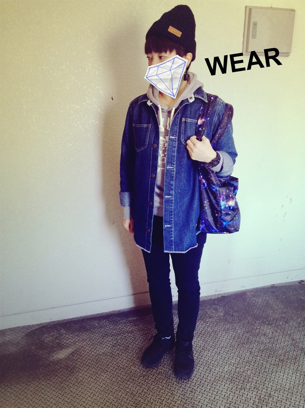 上と下を黒にしたコーデ。 X-girlのコーデ。 デニムシャツにグレーのパーカーインしたくていい感じになった😍😍 古着屋で買ったニューバランスのオールブラックが最近のお気に入り🎶