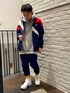 パーカーを合わせることで、カジュアル感を加えられるのもトラックジャケットの魅力! 足元はラインソックスを見せてアクセントをプラス!