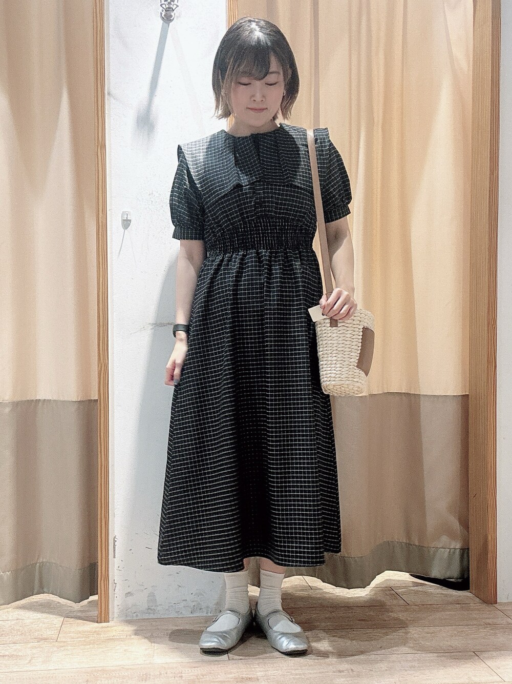 ameのワンピース「チェックスクエア襟ワンピース」を使ったコーディネート