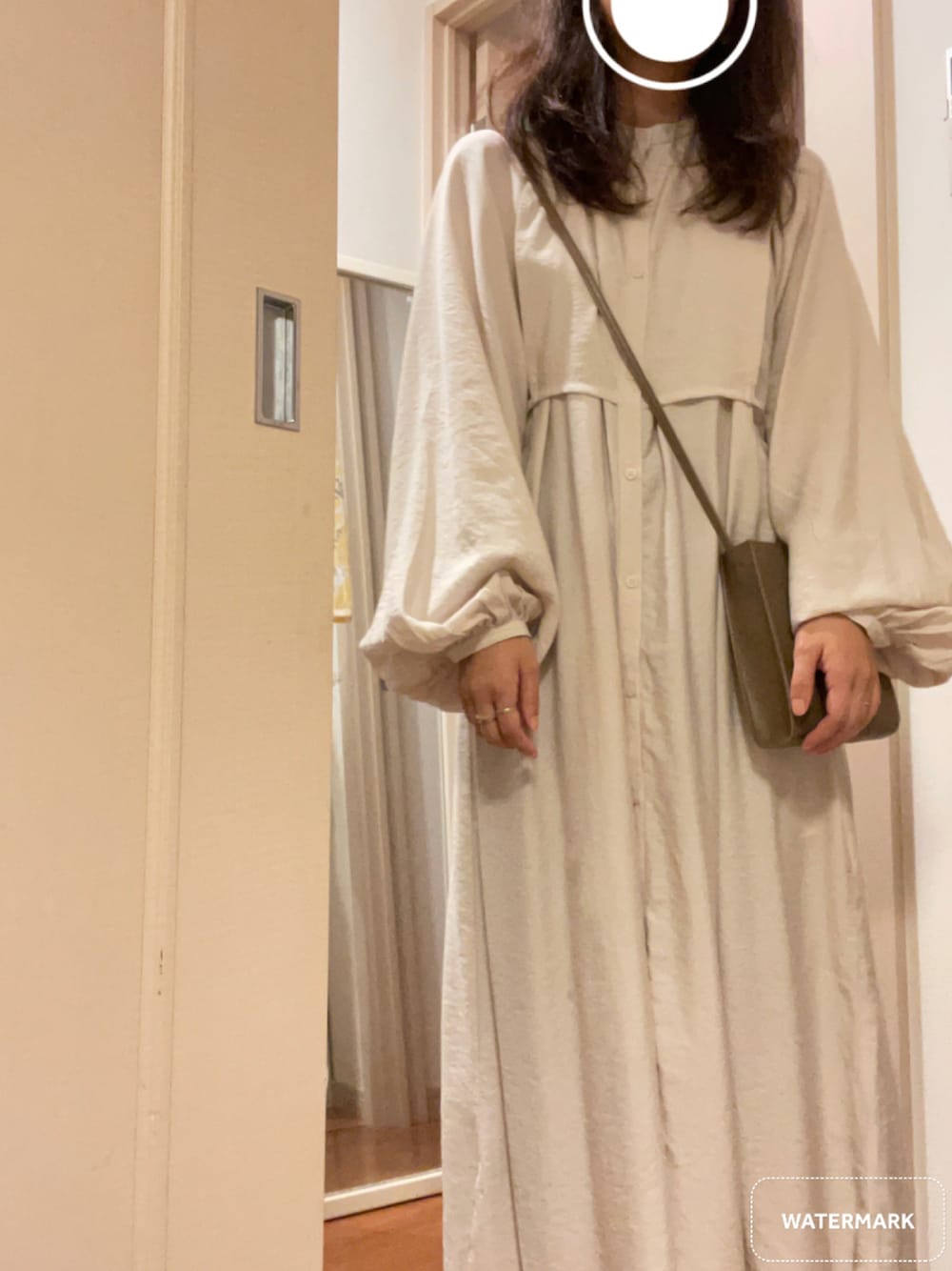 ぽわん袖のワンピース シンプルに1枚でかわいい◎