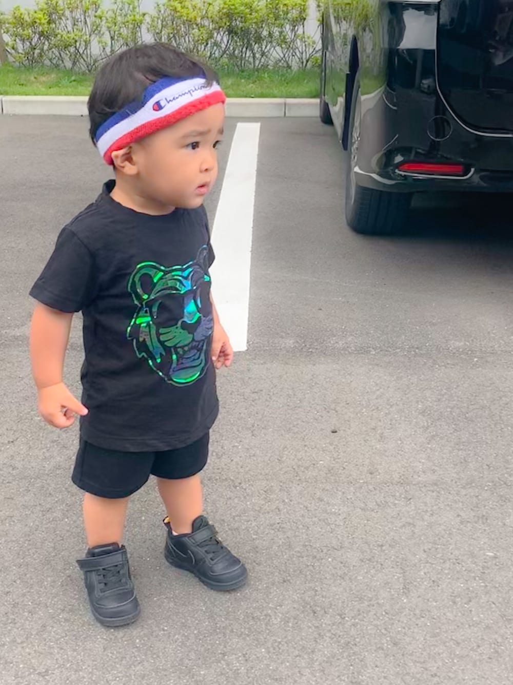 ブラック系のTシャツ/カットソー、その他のヘアバンドを着用したキッズの夏コーディネートの1枚目の写真