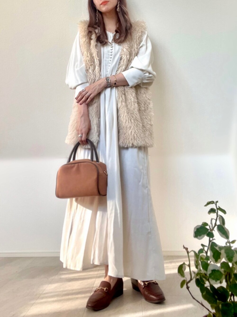 *𝒂𝒎𝒆𝒍𝒊𝒆𝒆*のベスト「プードルフェイクファーベスト」を使ったコーディネート